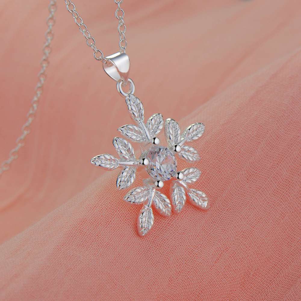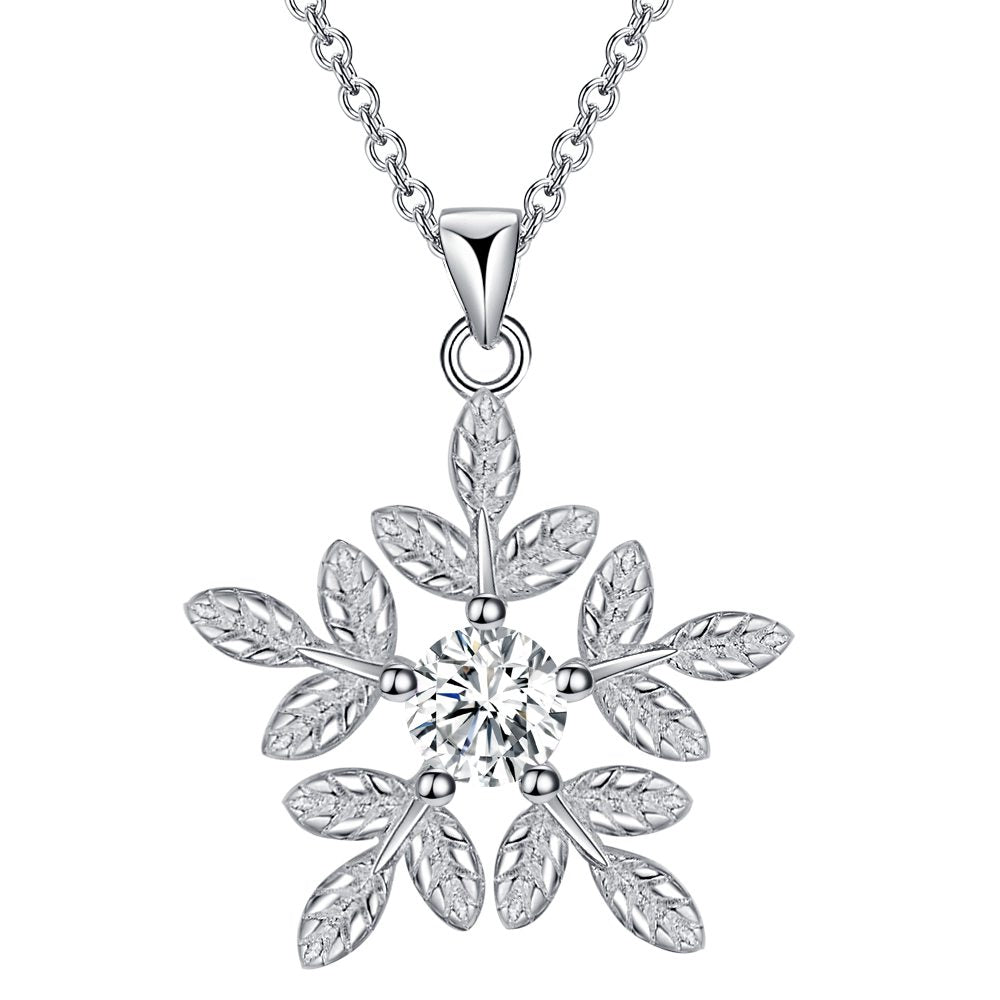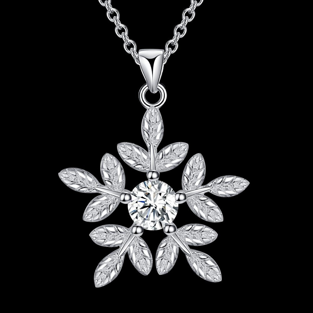 Lucky Silver - Silver Designer Snowflake Crystal Necklace - LOCAL STOCK - LSN1864